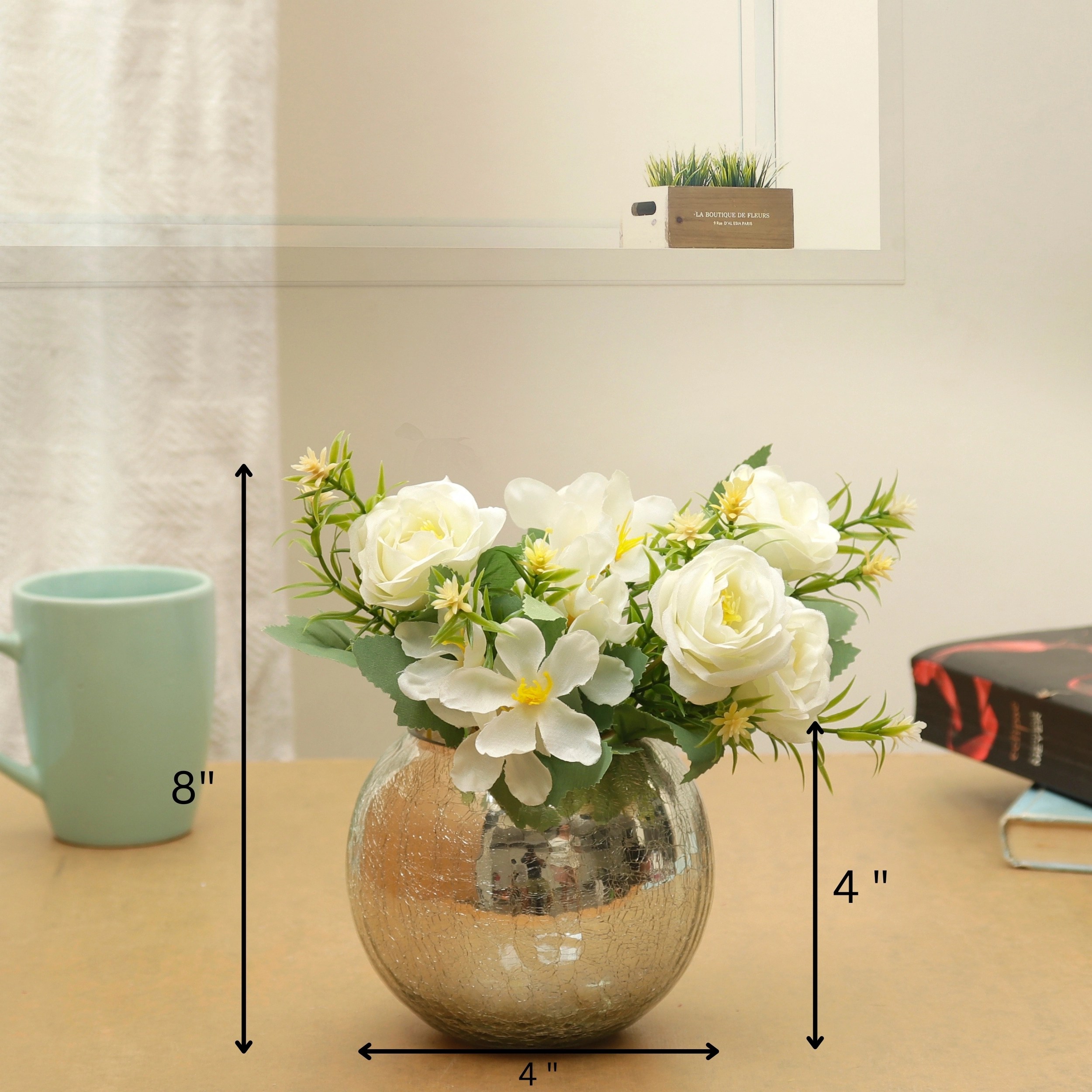 Silver Crackled Glass Vase with White Flower Bunch