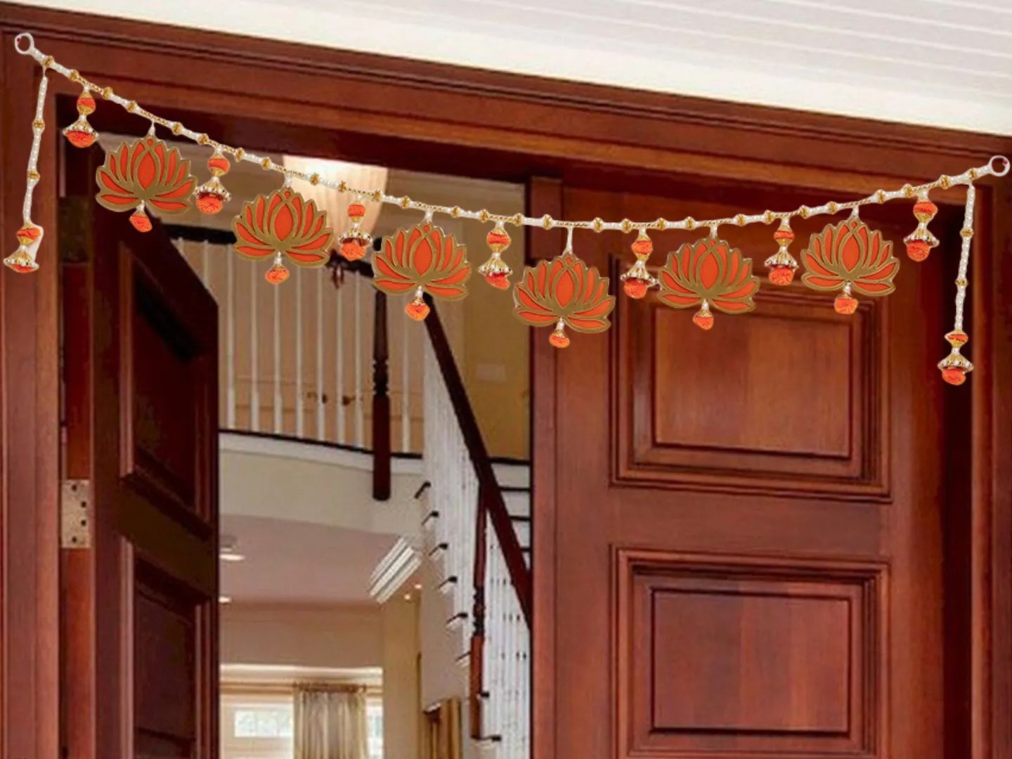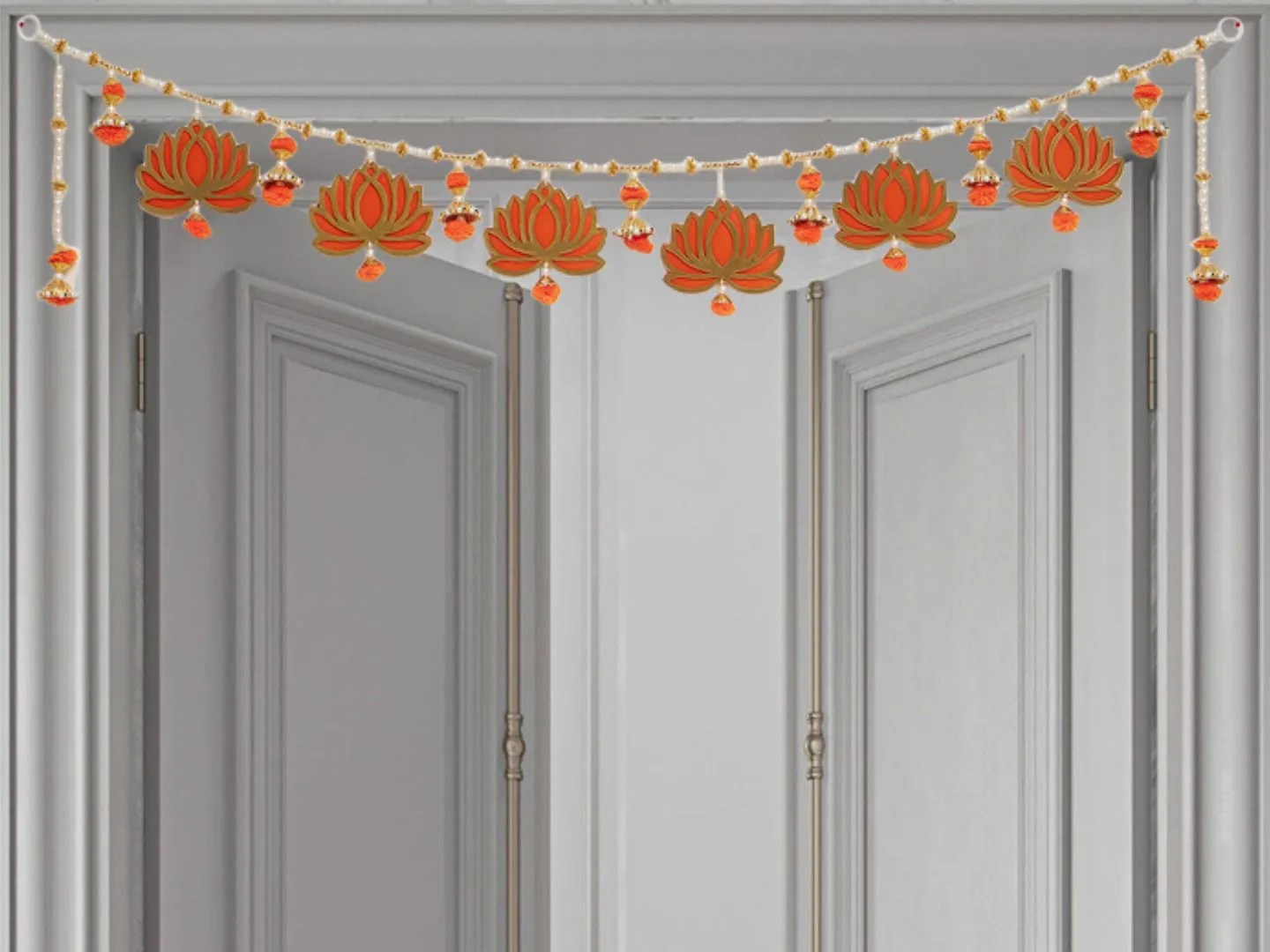 Festive Hanging Lotus Style Door Bandhanvar Toran (40×8 inch) Orange
