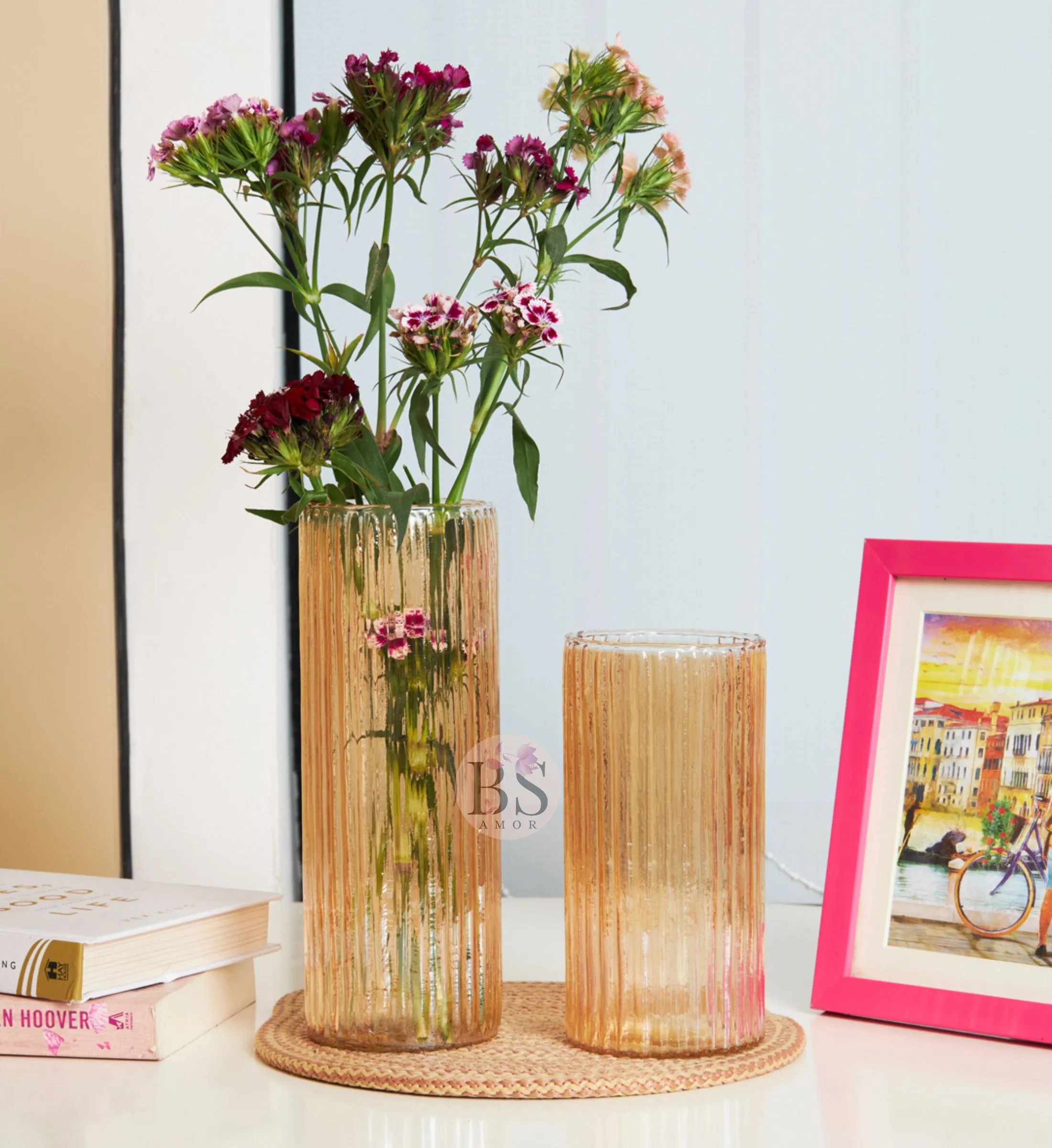 Use these decorative glass vases to add a stylish and elegant life to your home. Use them to place flowers and plants, or fill them with sand, pebbles or candles to create a unique stylish atmosphere. Our transparent glass vases complement various decorations and look great on your desk, dining table, living room and bedroom. Vase parameters: Color: Amber Tint Size: Height: 6.5″+ 8.5″ | Opening: 3.” Style: Nordic style vase /Ins style vase Suitable for bouquets: Fresh Flower , small daisies, chamomile, etc. The package contains: Glass vase*2 (not including flowers) Tips: 1. Due to irregular shape and manual measurement, the size may be slightly different. 2. Due to the glass material, if dropped from a high place, the product may break. 3. Due to the complexity of the craftsmanship of manual blown glass vases, it is inevitable that some bubbles will be generated. It is not a quality issue. Please understand that.