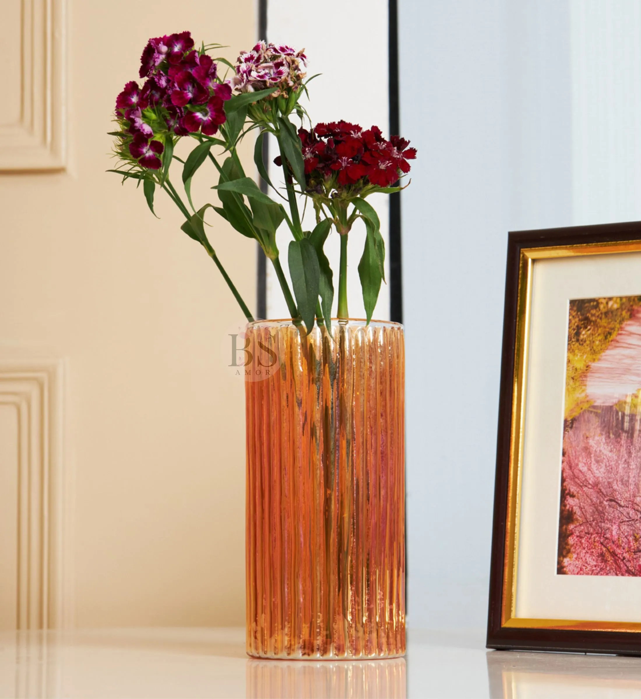 Use these decorative glass vases to add a stylish and elegant life to your home. Use them to place flowers and plants, or fill them with sand, pebbles or candles to create a unique stylish atmosphere. Our transparent glass vases complement various decorations and look great on your desk, dining table, living room and bedroom. Vase parameters: Color: Orange Tint Size: Height: 6.5″+ 8.5″ | Opening: 3.” Style: Nordic style vase /Ins style vase Suitable for bouquets: Fresh Flower , small daisies, chamomile, etc. The package contains: Glass vase*2 (not including flowers) Tips: 1. Due to irregular shape and manual measurement, the size may be slightly different. 2. Due to the glass material, if dropped from a high place, the product may break. 3. Due to the complexity of the craftsmanship of manual blown glass vases, it is inevitable that some bubbles will be generated. It is not a quality issue. Please understand that.